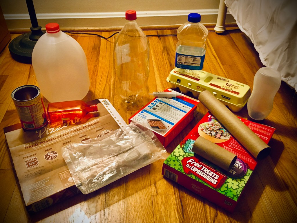 Getting stir-crazy? Cabin fever setting in? Need some space (yes, I went there)? Well, fear not! Today’s activity will solve all your problems: Launch your imagination AND use up all those empty food cartons, containers, cans, etc. from the past week at home.